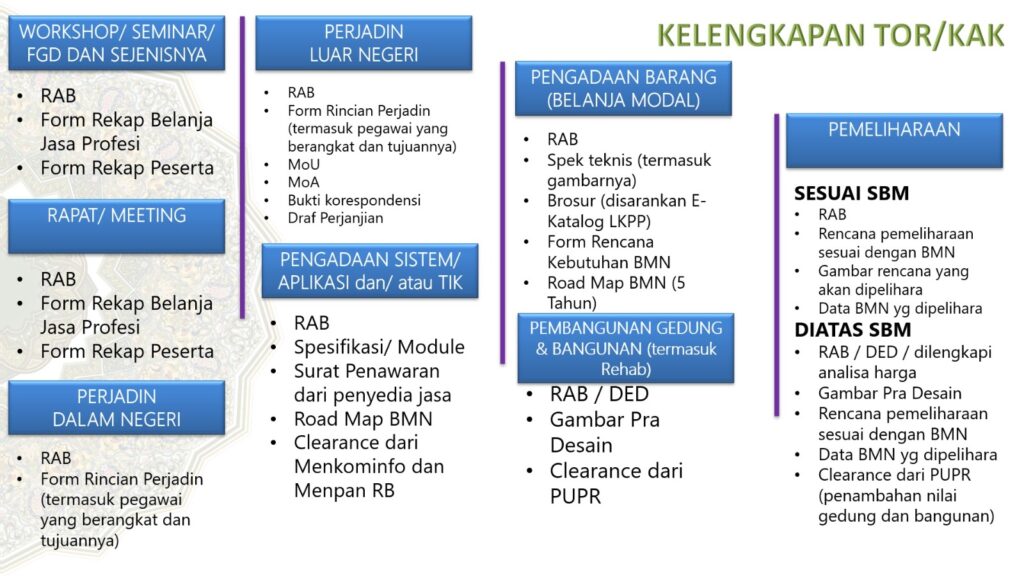 KELENGKAPAN TERM OF REFERENCE (TOR)/KERANGKA ACUAN ANGGARAN (KAK)